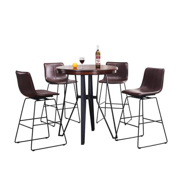 Complete your space with our 5-Piece Round Pub Table Set, featuring swivel, armless stools with a stylish stitched grid design and stable sled base legs. Crafted from a blend of metal frame, birch veneer, MDF, plywood, and PU leather, this set combines durability with rustic-industrial charm. Perfect for casual dining or bar areas, offering both effortless style and functional comfort.