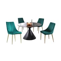 Upgrade your dining space with this 5 Piece Dining Table Set, featuring a black sintered stone, tempered glass, durable metal and velvet fabric for a modern, stylish look. Inspired by modern minimalist design principles, this dining table is crafted with clean lines and sleek surfaces, exuding an air of elegance and sophistication. Its refined and courteous luxury style adds a touch of gracefulness to any space.