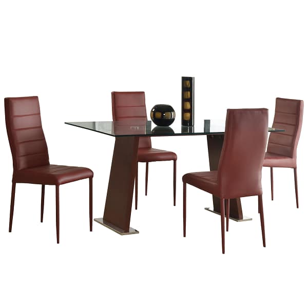 - Material: Metal Frame, MDF, Glass Table Top, Red PU Leather