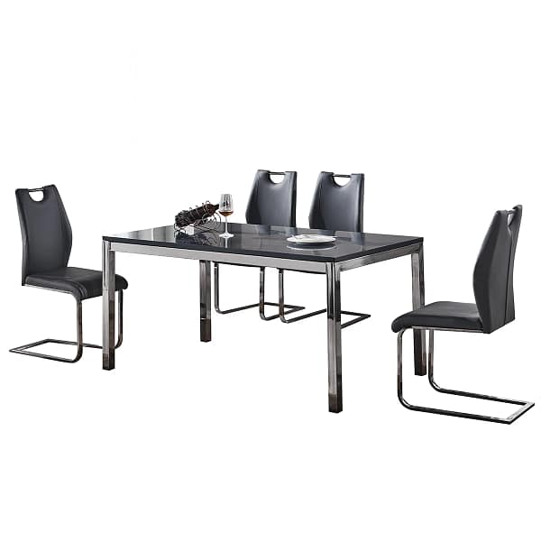 Upgrade your dining space with this Dining Table Set, featuring a high gloss grey chrome legs, durable MDF​ and ​PU leather for a modern, stylish look. This dining table set blends ​contemporary elegance​ with practicality. Perfect for kitchens, dining rooms, breakfast nooks, or bars. ​Sleek, modern design​ for any home!