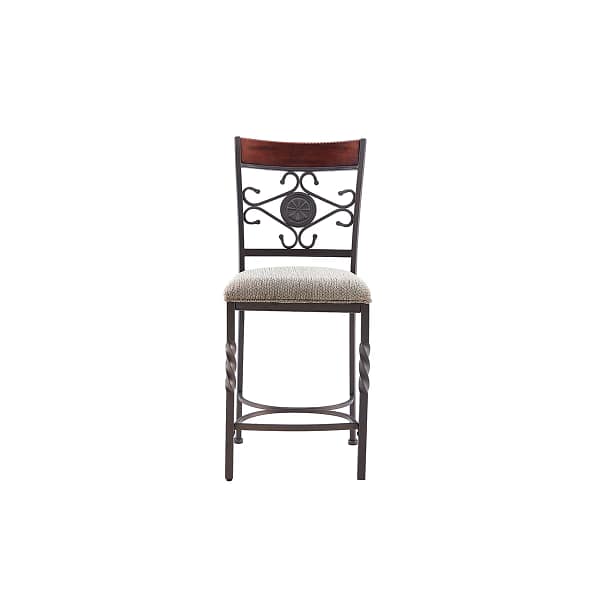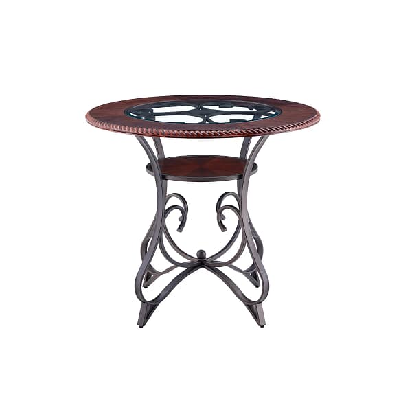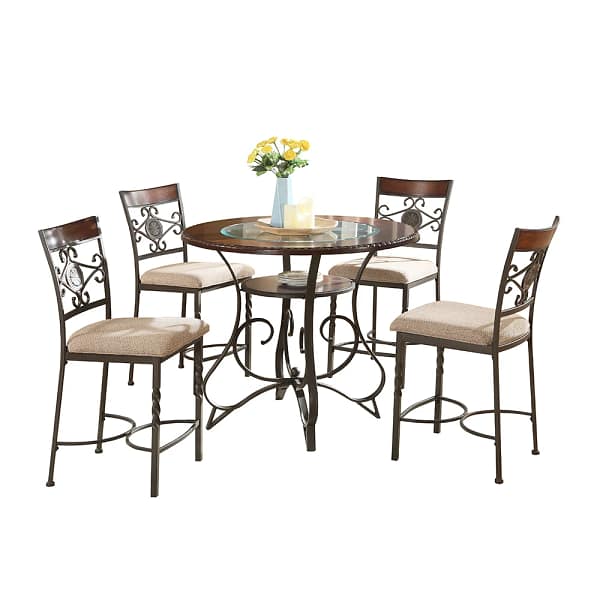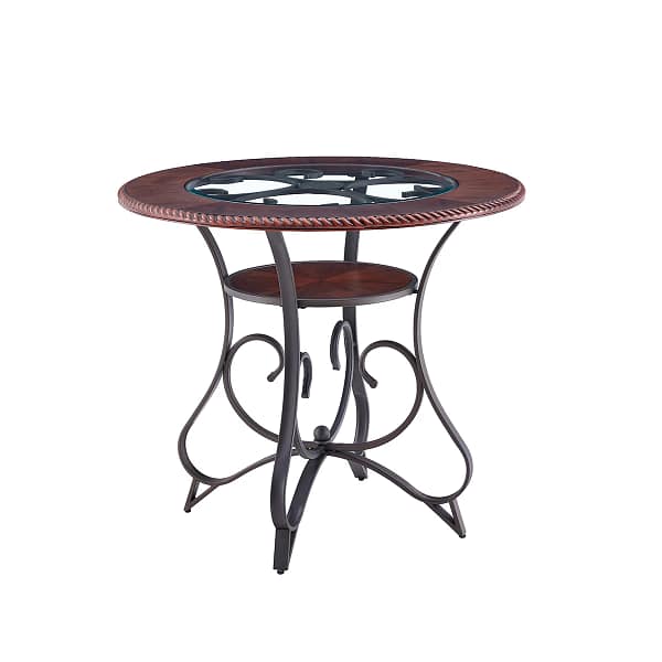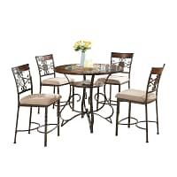 Upgrade your dining space with this 5 Piece Round Counter Height Bar Table Set. This Dining Collection is durably constructed of MDF with beautifully grained birch veneer and antique bronze metal frame for added strength. The combination of wood and metal gives this metal frame table a clean and contemporary look that is also robust and practical. This collection can be easily coordinated with the existing decor in your dining room, kitchen, or breakfast nook to complete your space’s handsome.
