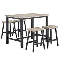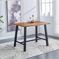 Maximize space with our 5-Piece Rectangular Pub Table Set. Crafted from birch veneer, MDF and metal for lasting durability. The stools conveniently tuck under the table when not in use, saving space while maintaining a clean look. Ideal for homes, restaurants, bars, and commercial spaces. Blends stylish classic design with practical functionality for any setting.