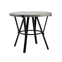 The compact industrial design makes this round bar table the perfect accent for your home. Crafted with an MDF tabletop with pine veneer and a black silver powder-coated iron base, this pub table exudes both style and durability. The matching stools feature solid pine wood seats, while the circular stretcher adds a distinctive design element—enhancing both aesthetics and structural strength. Designed for both commercial and residential use, this trend-setting table set is a great choice for your restaurant’s dining area or your kitchen at home.