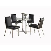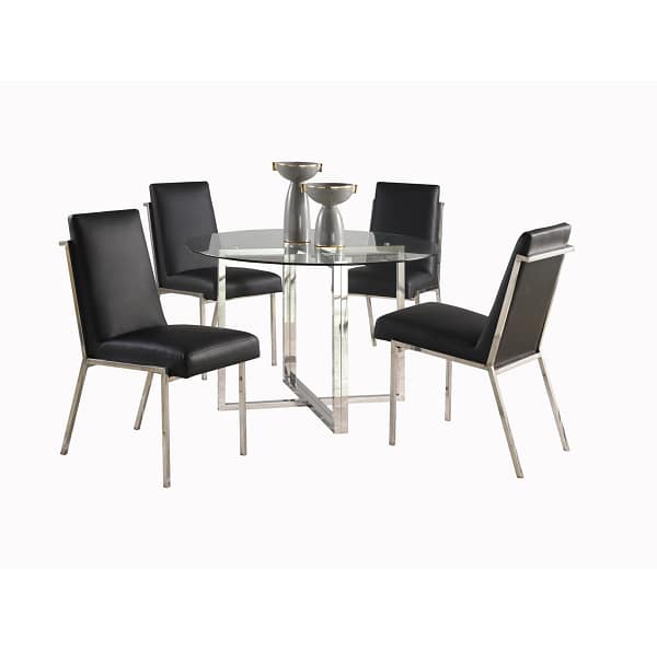 Upgrade your dining space with this 5 Piece Dining Table Set. The strikingly elegant dining table is a stylish and modern combination of stainless steel and glass, making this item a real eye-catcher. The stainless steel metal legs provide strong and sturdy support for the table. This table really is capable of being a centerpiece in any home! With a generous surface, you can dine in style with up to 4 guests. Combined with the luxurious PU upholstered dining chairs, this set will shout luxury and style! A must-have for a chic dining experience!