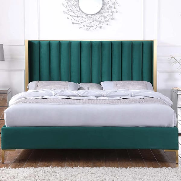 Upgrade your bedroom with our queen size upholstered bed, crafted with velvet fabric, plywood, and stainless steel for lasting durability. Featuring sturdy wood support, this modern luxury bed combines elegance with comfort, wrapped in soft velvet fabric for a sophisticated look. Perfect for a stylish and supportive sleep experience.