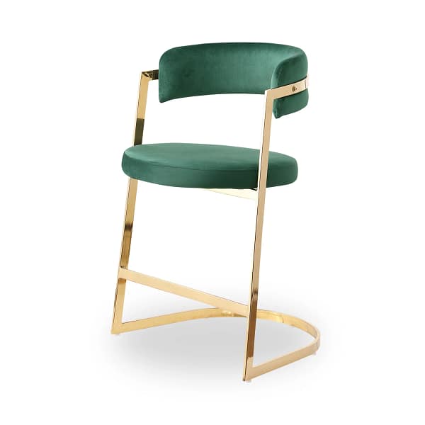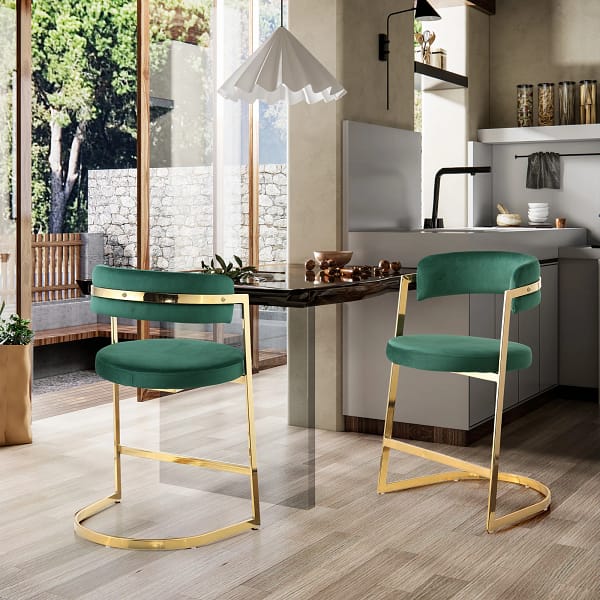 Upgrade your space with ​modern Counter Height Bar Stools with Back, with a sturdy ​300 lbs weight capacity, these stools remain stable without wobbling. The stylish gold metal footrest not only adds modern flair but also provides extra comfort and support for extended sitting. Both the upholstered seat and barrel backrest are made from soft velvet fabric, offering a cozy and skin-friendly touch for ultimate relaxation. Perfect for ​restaurants, kitchens, living rooms, beach bars, offices, cafes, and more. Elevate your seating with comfort and elegance.