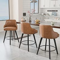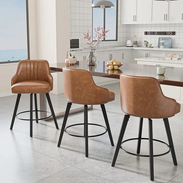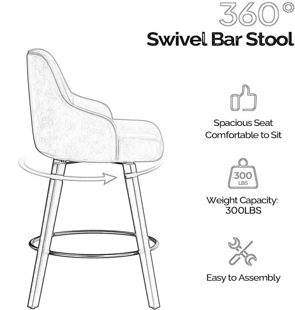 Upgrade your space with our Swivel Bar Stool with Back, featuring a sturdy metal frame and premium PU leather upholstery. Designed for both style and function, these stools support up to 300 lbs with a stable. The metal legs ensure sturdiness, perfect for long-term use, while the 360° swivel feature allows effortless rotation for easy conversation. The easy-to-clean PU leather ensures low maintenance, making them perfect for restaurants, kitchens, bars, cafes, offices, and more. Their modern yet classic design adds a timeless touch to any interior. Elevate your seating with these durable, stylish, and versatile bar stools today!