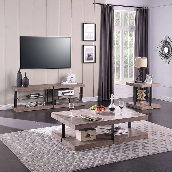 - Size: Coffee Table: 137 x 89 x 38 cm; End Table: 61 x 61 x 61 cm; TV stand: 180 x 40 x 55 cm