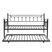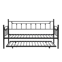 - This daybed is constructed with a premium steel frame and reinforced hardware, The sturdy metal slats offer strong mattress support that prevents it from sagging. In addition, the stable structure of the bed frame can prevent shaking when turning over, thus bringing you a sweet sleep.