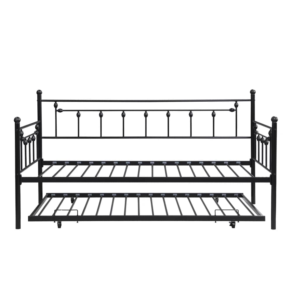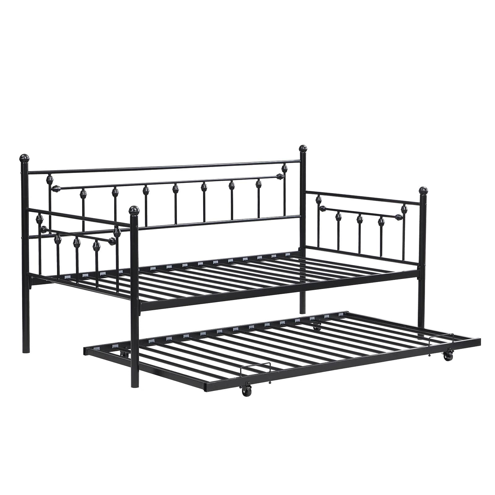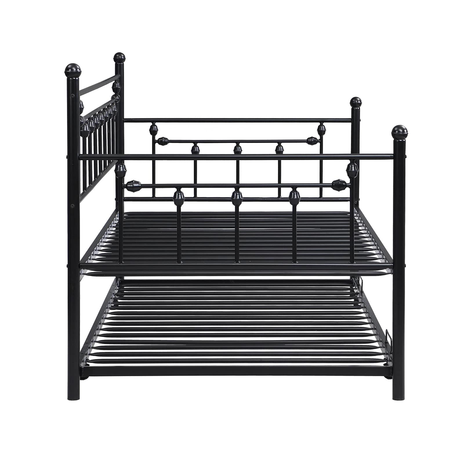 - This daybed is constructed with a premium steel frame and reinforced hardware, The sturdy metal slats offer strong mattress support that prevents it from sagging. In addition, the stable structure of the bed frame can prevent shaking when turning over, thus bringing you a sweet sleep.
