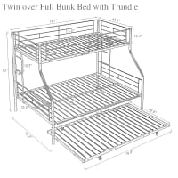 Upgrade your space with our Twin Over Full Metal Bunk Bed With Trundle, crafted with a sturdy steel metal frame, this durable and stable bunk bed offers a quiet, noise-free experience and a large weight capacity, ensuring a safe and comfortable sleeping space. The easy-to-assemble design includes clear instructions and all necessary parts, allowing you to create a cozy, space-saving solution without the need for a box spring. Featuring a twin-over-full configuration and a convenient trundle bed, this versatile bunk bed is perfect for accommodating guests or siblings, making it an ideal addition to any modern bedroom.