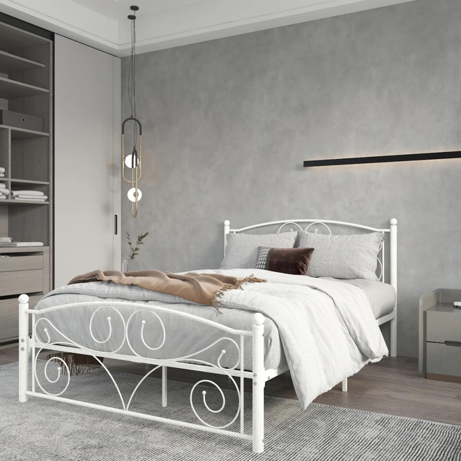 Discover our Full Size Metal Bed, crafted with a sleek white metal frame for a stylish modern look. Engineered with reinforced metal slats and a strong center support leg for enhanced durability and lasting stability. Perfectly combines robust construction with contemporary design, ideal for creating a chic and reliable bedroom centerpiece.