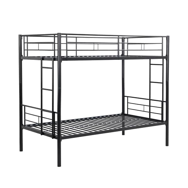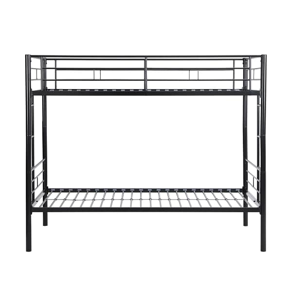 Upgrade your space with our Twin Over Twin Bunk Bed, crafted with a sturdy steel metal frame, this durable and stable bunk bed offers a quiet, noise-free experience and a large weight capacity, ensuring a safe and comfortable sleeping space. The easy-to-assemble design includes clear instructions and all necessary parts, allowing you to create a cozy, space-saving solution without the need for a box spring. This bunk beds can be used for many different spaces, whether for a dorm room, a kids’ room, worker’s dormitory, or a spare room. The space-saving design of our twin over twin bunk bed is the ideal configuration for a compact home.
