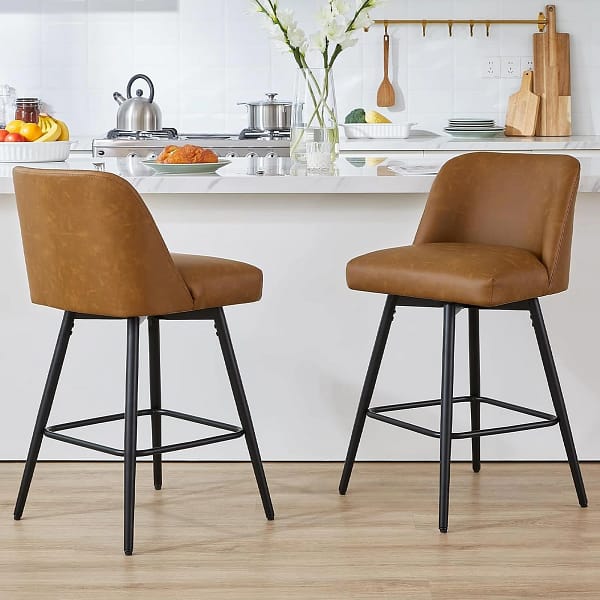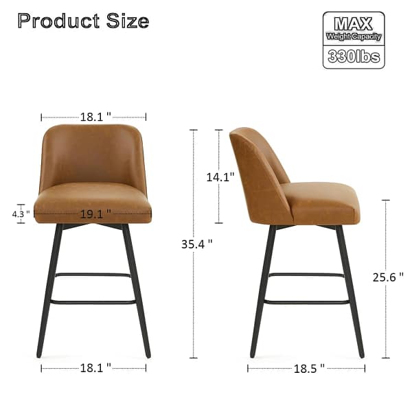 Upgrade your space with our Swivel Bar Stool with Back, featuring a sturdy metal frame and premium PU leather upholstery. Designed for both style and function, these stools support up to 300 lbs with a stable. The metal legs ensure sturdiness, perfect for long-term use, while the 360° swivel feature allows effortless rotation for easy conversation. The easy-to-clean PU leather ensures low maintenance, making them perfect for restaurants, kitchens, bars, cafes, offices, and more. Their modern yet classic design adds a timeless touch to any interior. Elevate your seating with these durable, stylish, and versatile bar stools today!