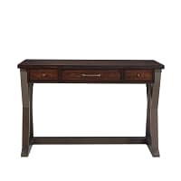 Elevate your home office with a Writing Desk. This walnut-finished desk features an expansive desktop that can be used as a computer or laptop table, providing ample workspace for various activities such as working, studying, writing, reading, and more, allowing users to spread out their materials comfortably and efficiently. The 3 drawer offers convenient storage, while the stylish legs add a touch of elegance. Create an office, writing or study space in your loft, living room or bedroom.