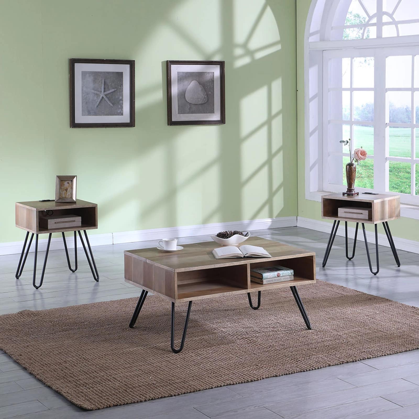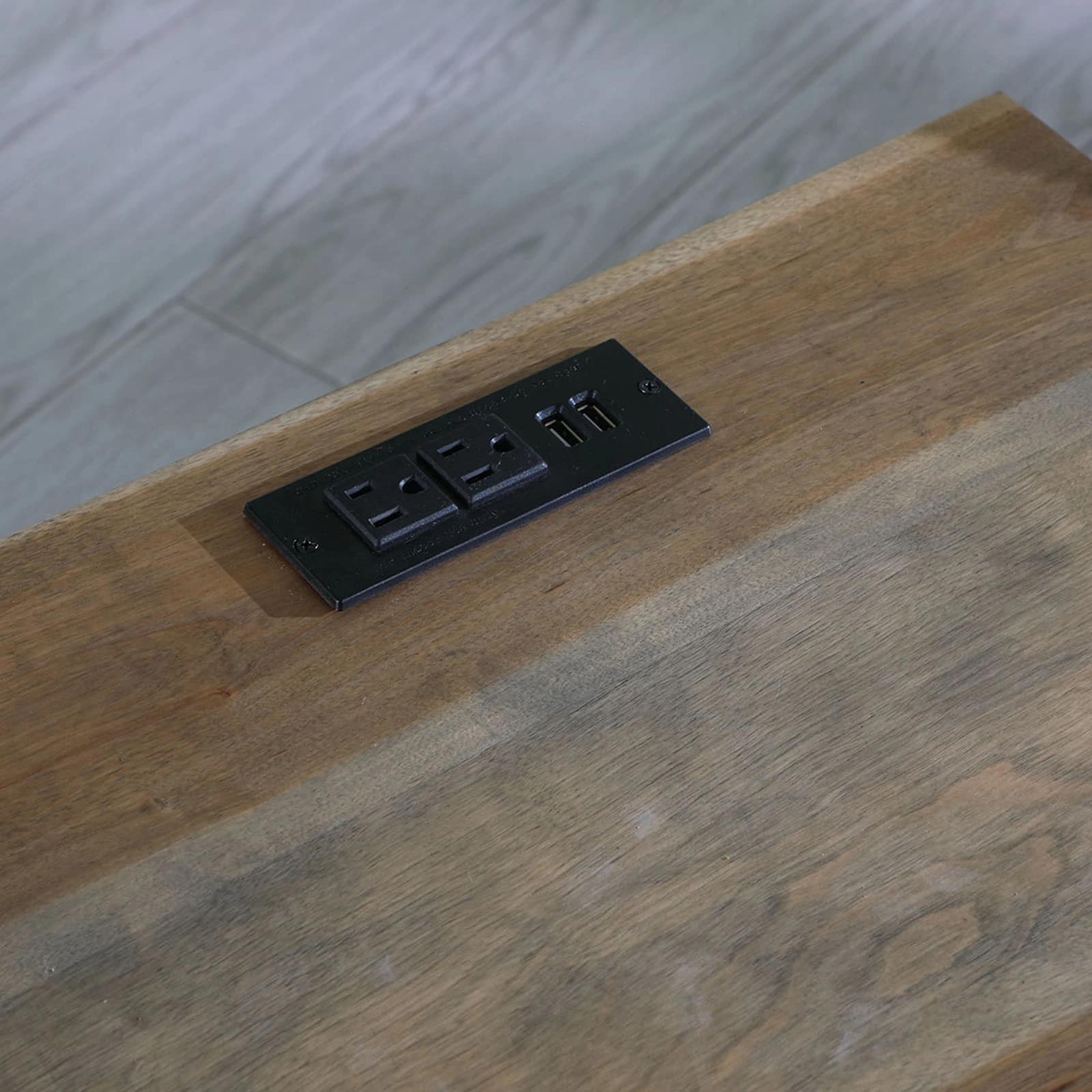 Upgrade your space with this stylish end table with USB charger, crafted from birch veneer and PB with a sleek black metal frame. Combining rustic wood with matte metal legs, it offers a timeless look that complements any decor. The modern, chic design blends functionality and aesthetics, featuring built-in USB ports for convenient charging. Perfect for living rooms, bedrooms, or offices, this side table merges practicality with elegance. A must-have for contemporary homes!