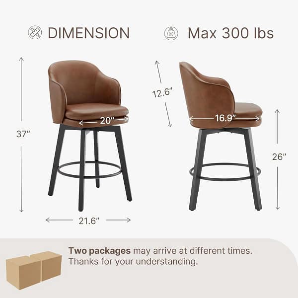 Upgrade your space with our ​Swivel Bar Stool with Back, featuring a sturdy ​wood frame​ and premium ​PU leather​ upholstery. Designed for both style and function, these stools support up to ​300 lbs​ with a stable. The wood legs ensure sturdiness, perfect for long-term use, while the ​360° swivel feature​ allows effortless rotation for easy conversation. The easy-to-clean PU leather ensures low maintenance, making them perfect for ​restaurants, kitchens, bars, cafes, offices, and more. Their ​modern yet classic design adds a timeless touch to any interior. Elevate your seating with these durable, stylish, and versatile bar stools today!